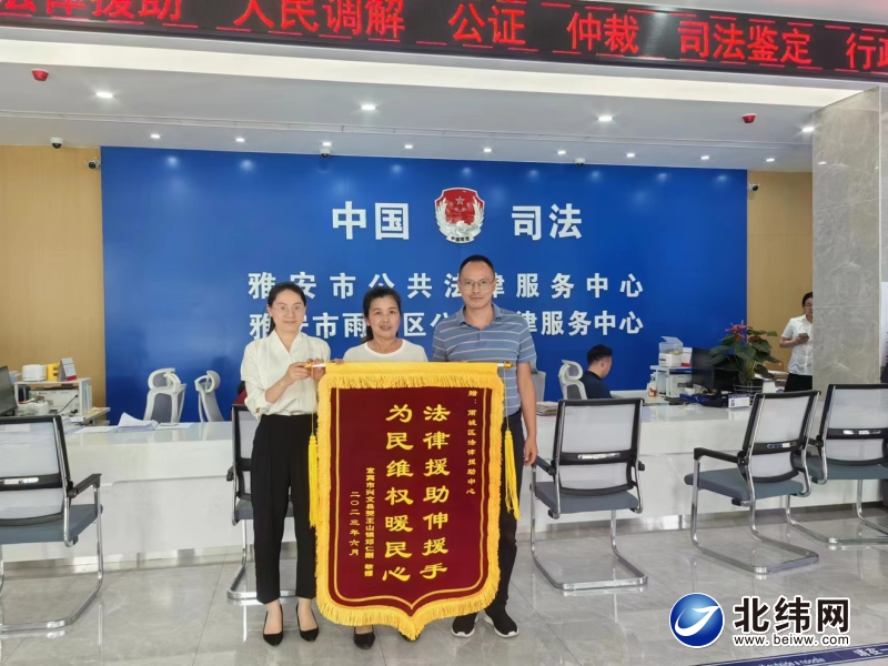 群众向雨城区法律援助中心赠送锦旗
