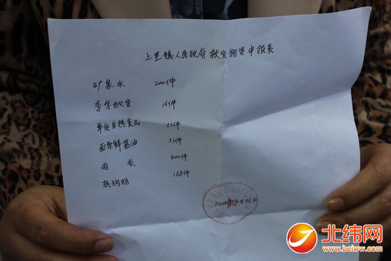 上里镇将需要的救灾物资造表上报雨城区。需要的物资通过受灾群众上报,镇政府所了解情况确定,确保按需分配。