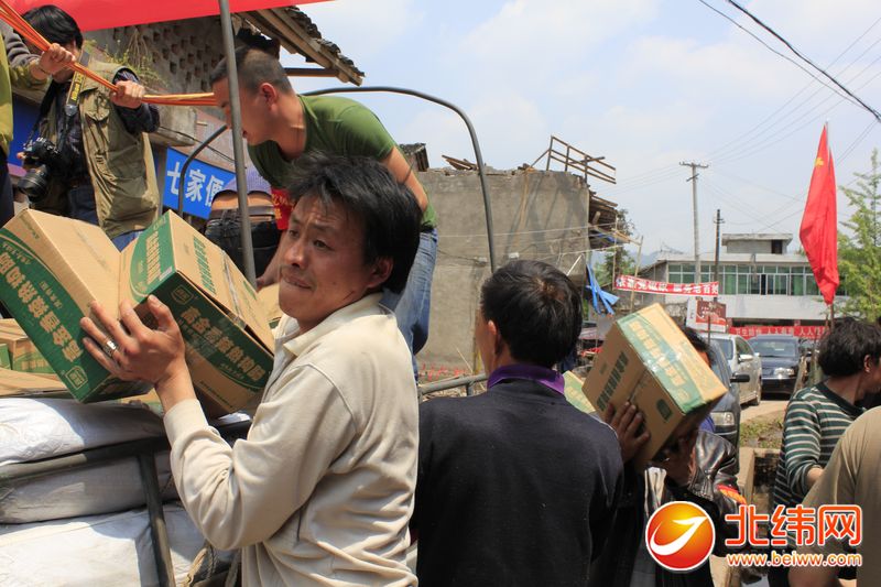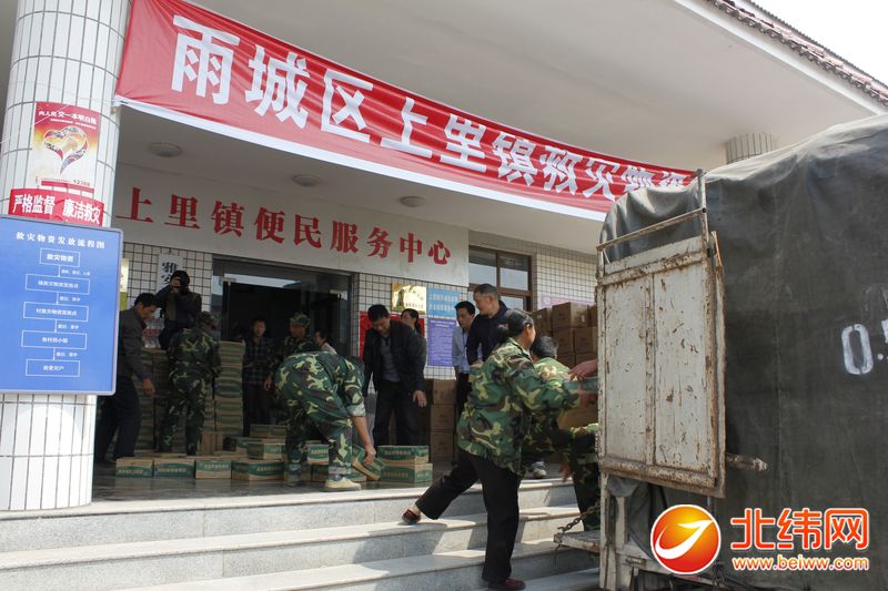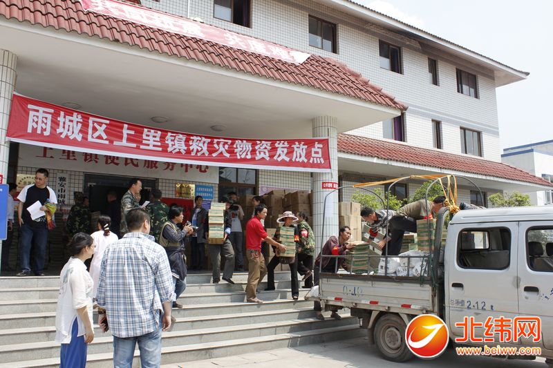 北纬网讯(记者 肖科)4月26日,记者来到雨城区政府,对救灾物资发放情况进行了解,并跟随运往上里镇的物资运送车见证救灾物资到达受灾群众手中的过程。