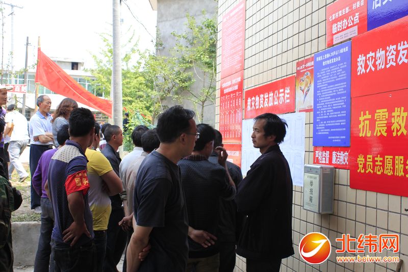 救灾物质由村里的党员突击队队员领取后分别发放,领取物资前,突击队员进行登记签字,注明发放村民。