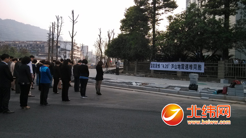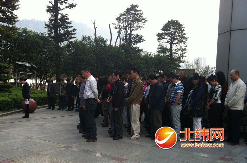 默哀3分钟,表达对“4·20”芦山7.0级地震遇难同胞的深切哀悼。(李函雨)