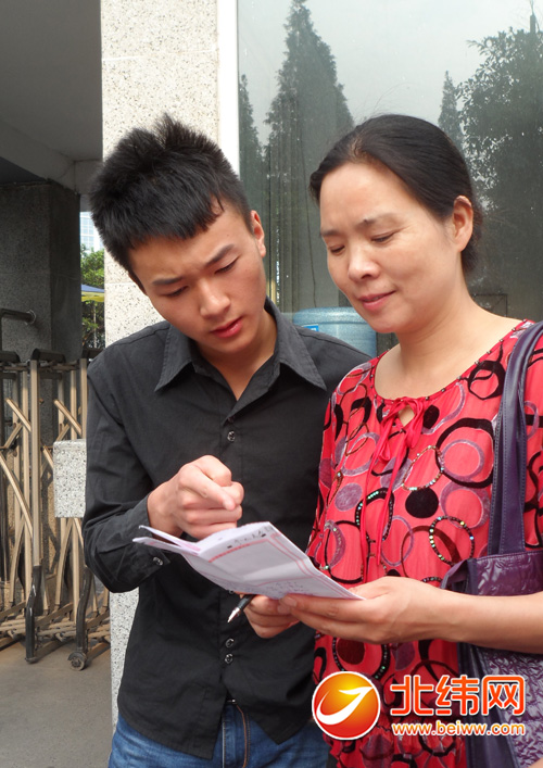 一考生和家长正在了解招生信息