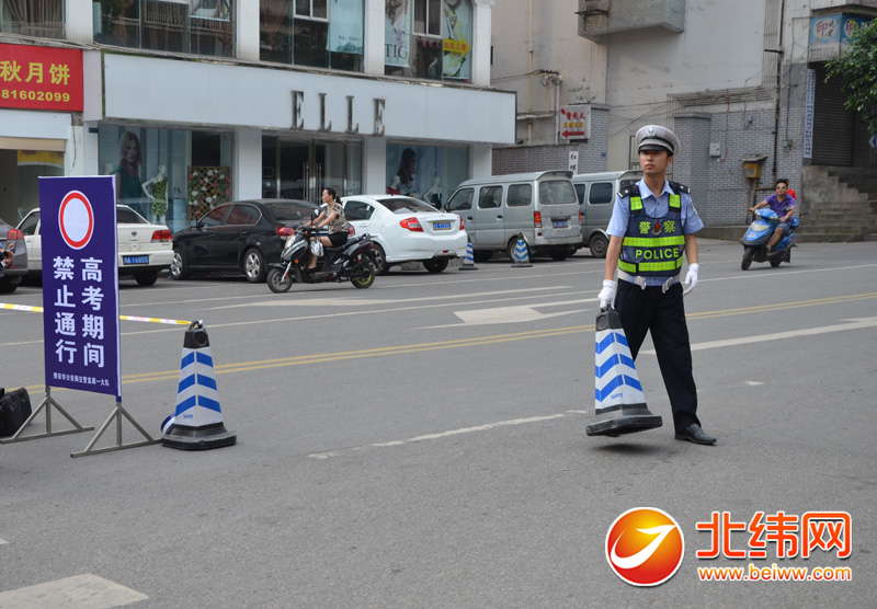 交警对相关道路实施交通管制,为考生营造一个安静的考生环境