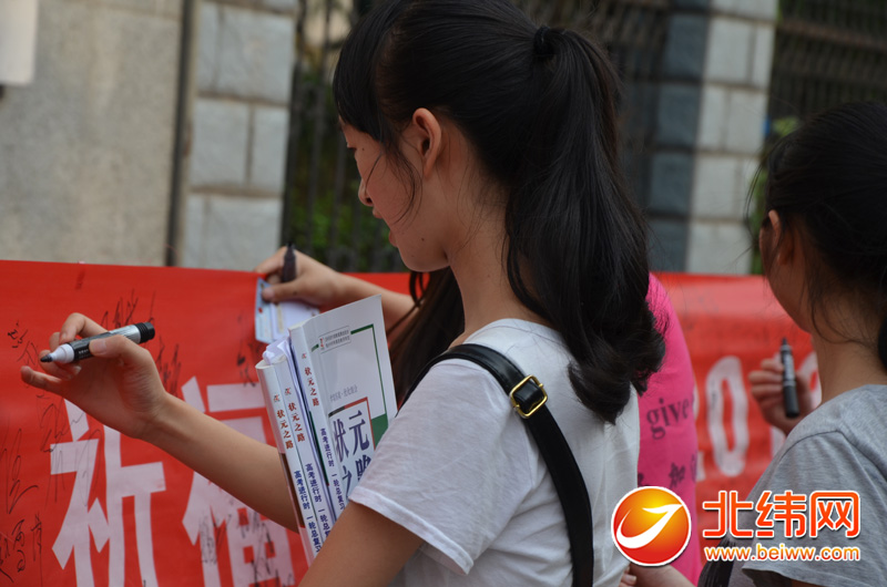 考生在横幅上写下梦想
