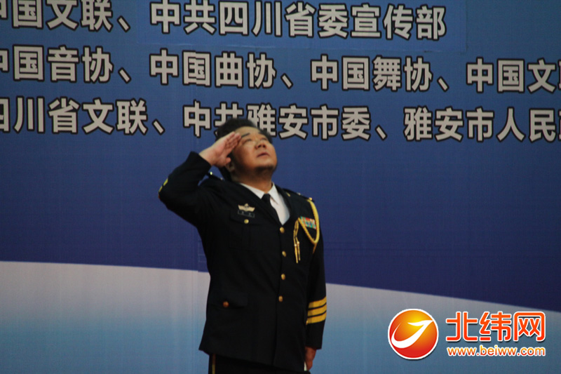 霍勇在演唱中敬礼