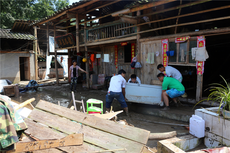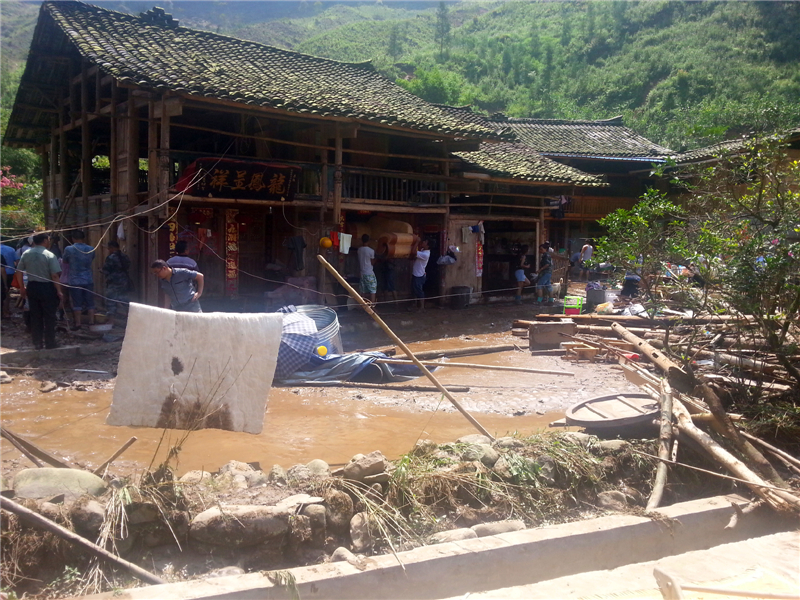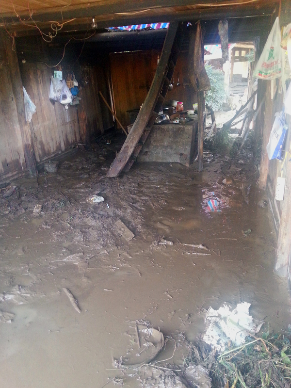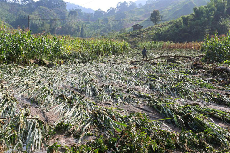 据宝兴县应急办提供的最新数据显示,在此次暴雨引发的山洪中,大溪乡共有3655人受灾(全乡无一人伤亡);60余户、200多间房屋不同程度进水,其中有两户部分倒塌;共有包括玉米、水稻、马铃薯在内的1300多亩农田受损(400多亩农田完全绝收)。而在这其中,无论是受灾户数,还是农田受损绝收数,曹家村都占到80%以上。以农田为例,此次山洪灾害中,曹家村共有1000余亩农田受灾,其中约有400亩绝收,几乎影响到该村所有农户。