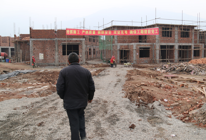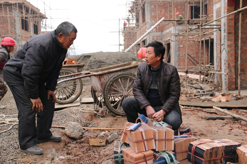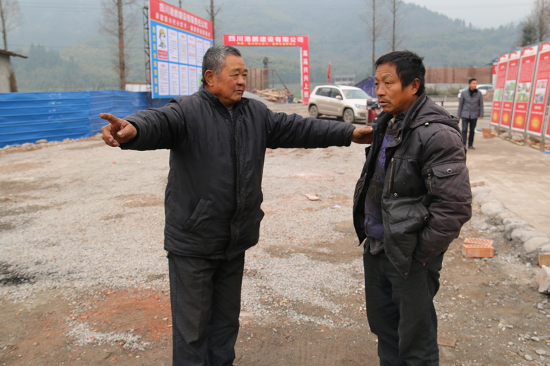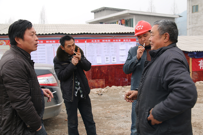 杨有云一有空就到工地上,看看重建的进度。有时候碰见了施工方,他便从包里拿出烟散发,一边抽烟一边和他们聊起工程进展情况,及建房中遇到的问题等。