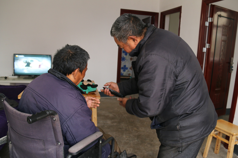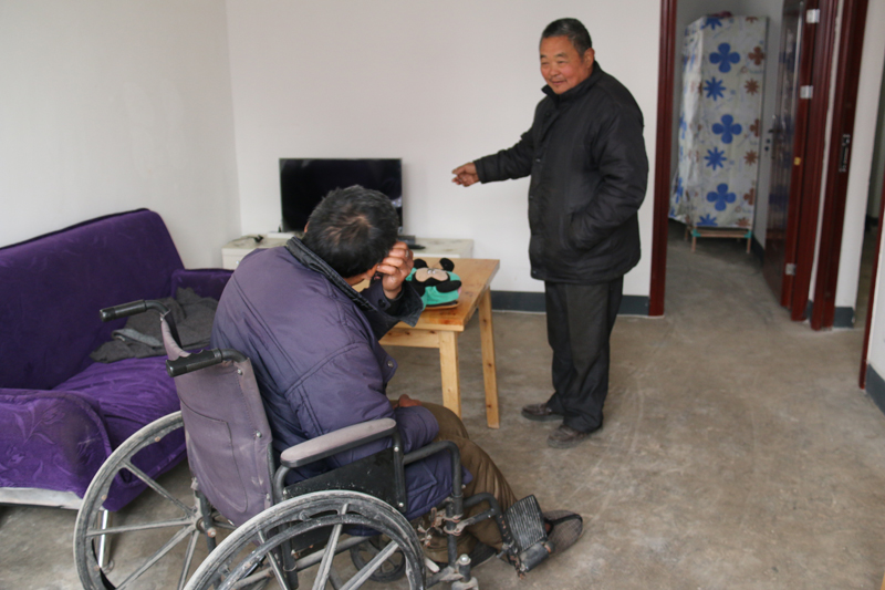 刚刚搬进新房的杨克祥不会开电视,杨有云耐心地教他。有时候老人发脾气,他就陪他吹牛,聊天。