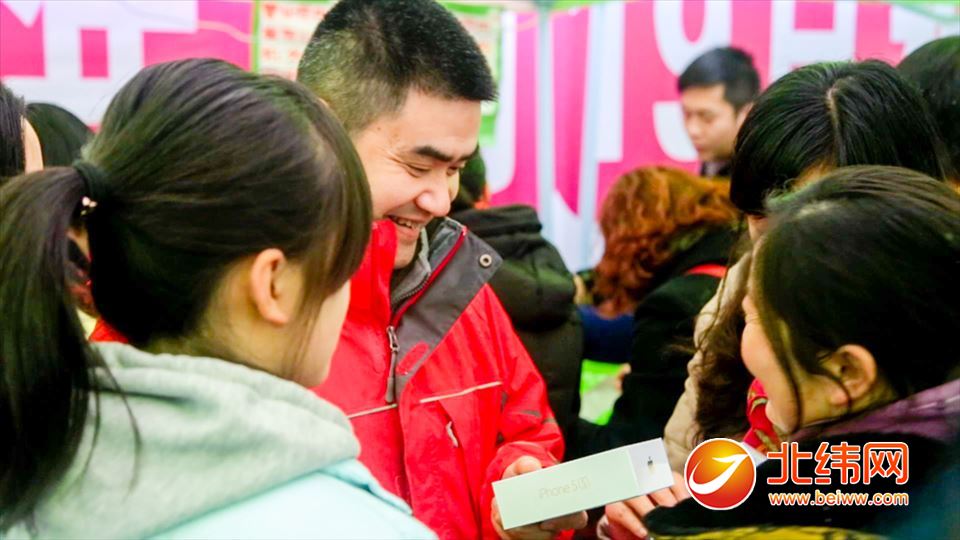 这位大哥买到了心仪的手机笑安逸了。