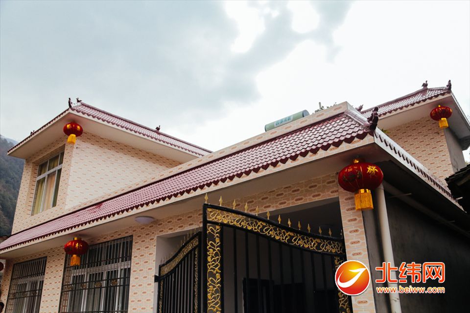 挖角村藏族村民的新房,门口的红灯笼,年味浓郁。