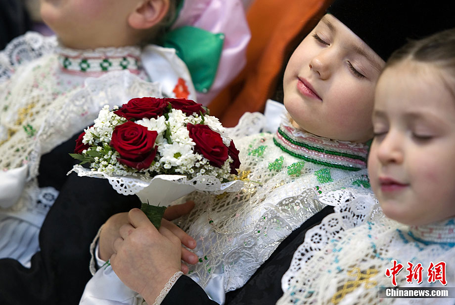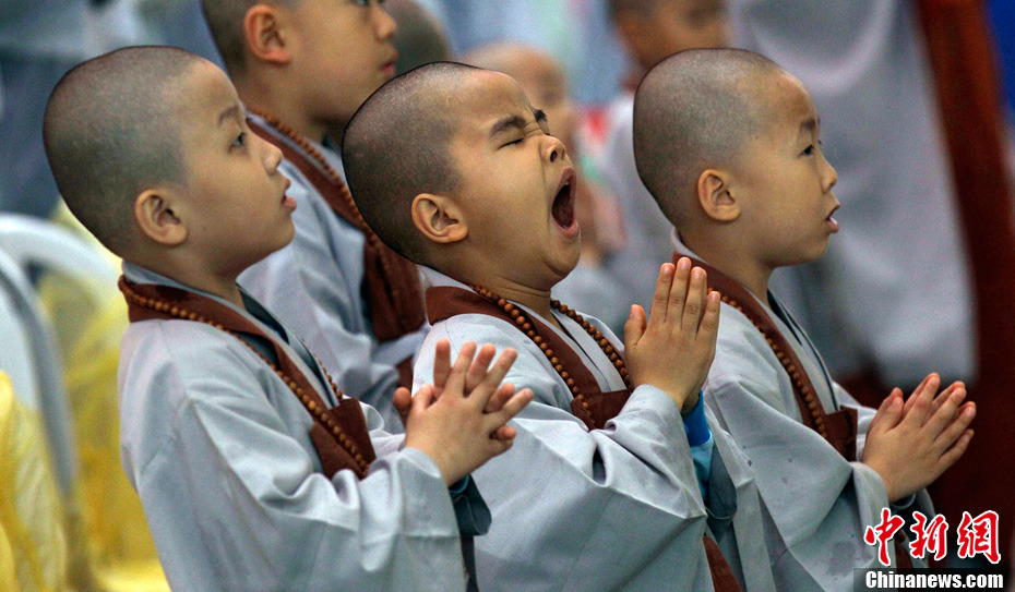 2011年5月10日,韩国,在一场佛诞日庆祝活动中,一名“童子僧”双手合十打起了哈欠。