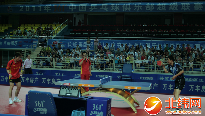 北纬网讯(记者 白雨锶)今(26)日晚,2011年361°中国乒乓球俱乐部超级联赛在雅安市体育馆隆重举行。四川队主场对阵江苏队,最终四川队3:1获得比赛的胜利。