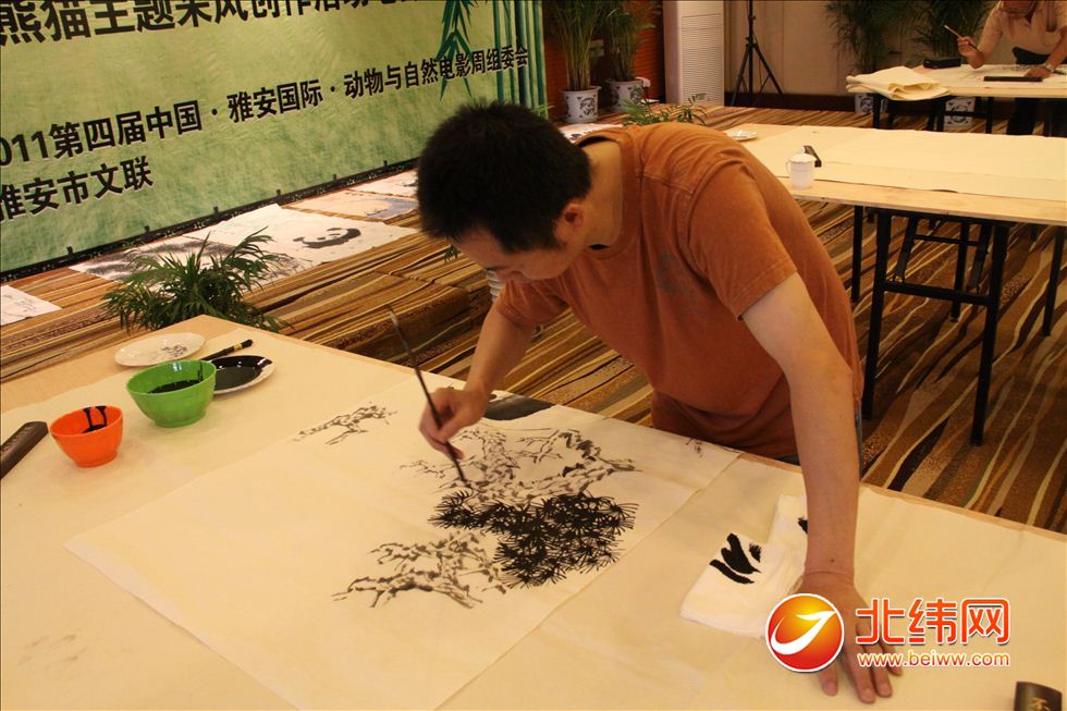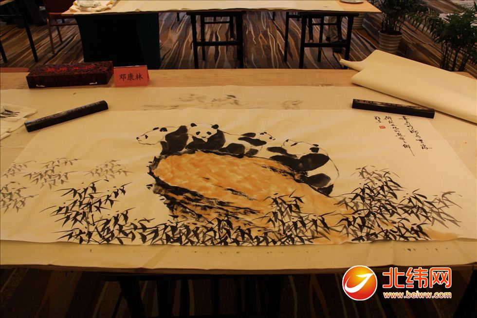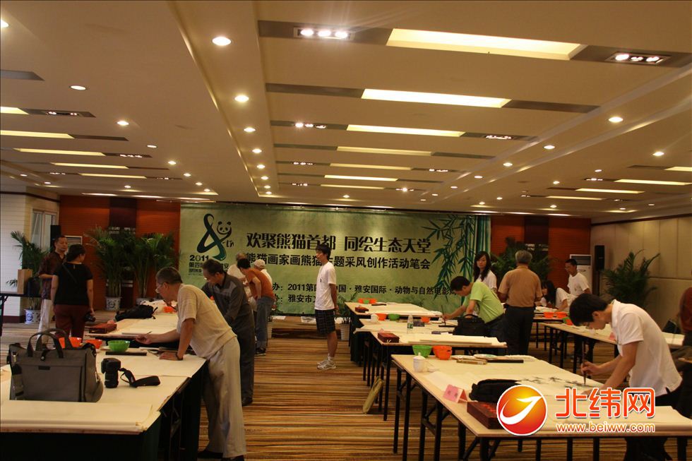29日下午,“熊猫画家画熊猫采风活动”圆满结束后,参加本次活动的各位画家立即挥毫泼墨,展开创作。