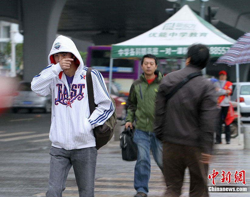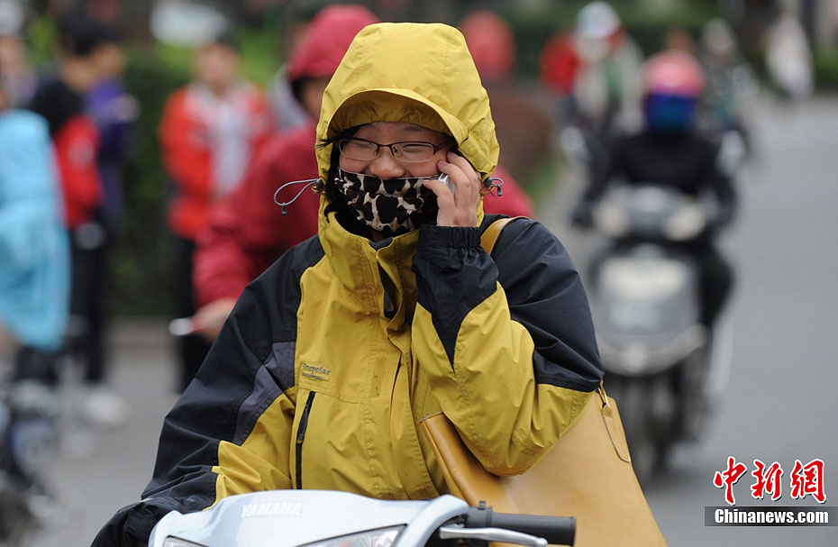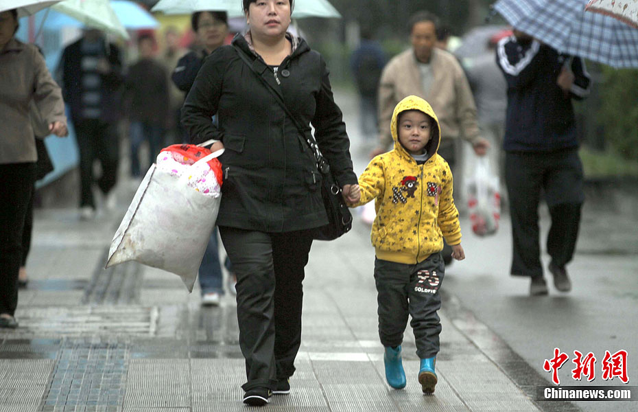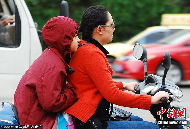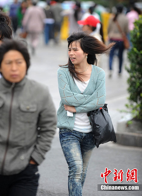 9月19日,武汉大街小巷过往行人纷纷穿上御寒外套,应对低温天气。从昨日起,呼啸的5级北风让江城气温一路猛跌至12℃左右。中新社发 张畅 摄