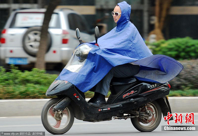 9月18日,在江西九江市街头,市民穿上秋衣在寒风中出行。随着较强冷空气不断南下,从9月18日开始,中国南方大部地区气温出现大幅下降,四川、湖南、江西等多省累积降幅将超10℃,局地达15℃左右。此次大幅降温或导致江南中北部出现寒露风,这对近期正处抽穗扬花期的晚稻产生不利影响。据了解,此次冷空气的影响会一直持续到22日。胡国林 摄 图片来源:CFP视觉中国