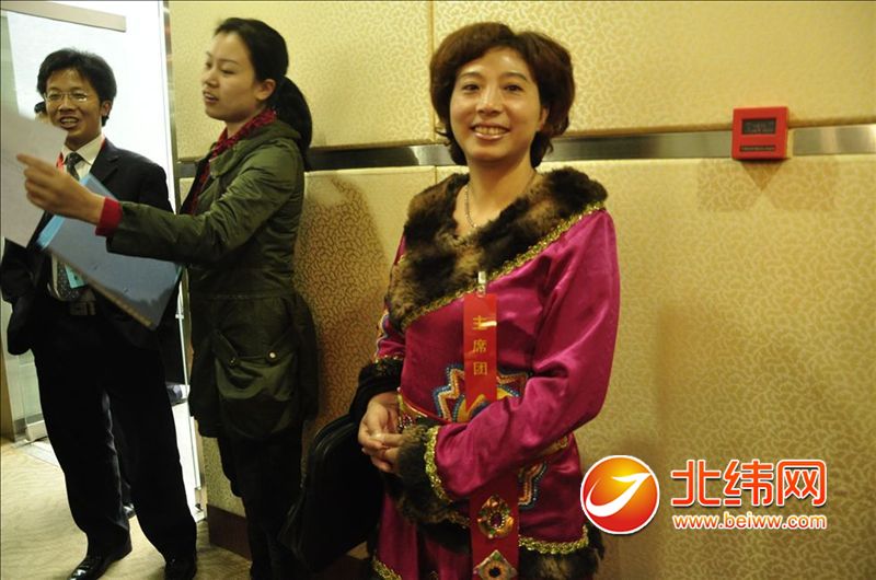 身穿民族服饰参会