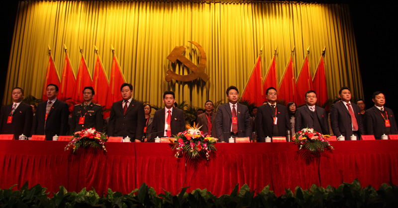 大会主席团成员:范继跃、王华、王强、郑建华、孔德黎、漆家华、马毅强、苏朝全、王军、高永洪在主席台前排就坐。