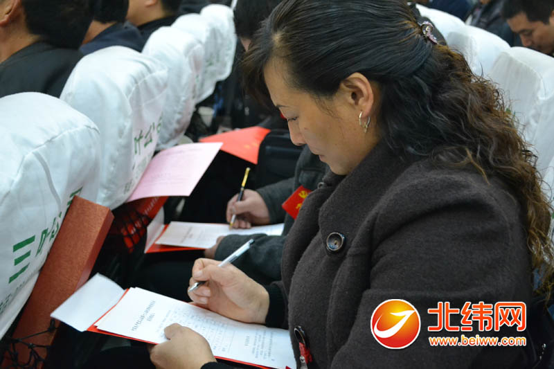 主席台代表认真看资料