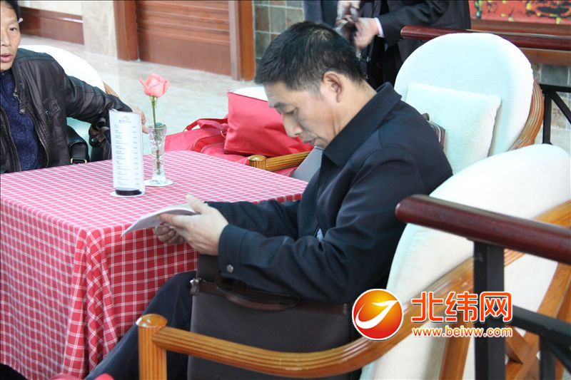 领取资料后,党代表立即认真查看会议安排