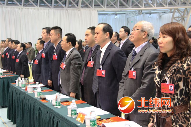 庄严的国歌声响起,全体起立。