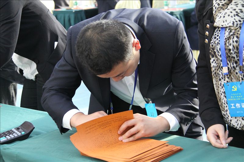 代表认真填写选票