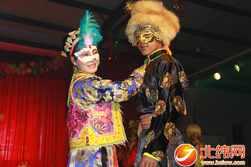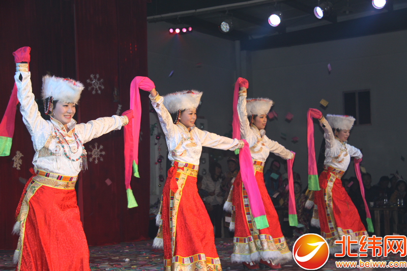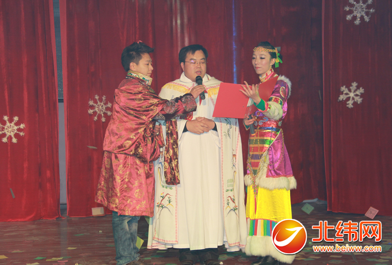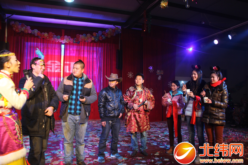 宝兴县委书记韩冰参加圣诞狂欢晚会并致辞。图为韩冰为获奖嘉宾颁发礼品