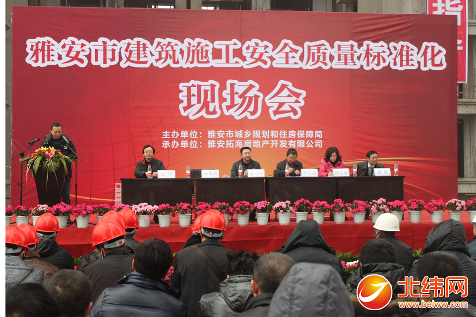北纬网讯(记者 姜雯)27日,雅安市建筑施工安全质量标准化工地创建会议在拓海·第一江岸隆重召开,参加本次会议的有市城乡规划建设和住房保障局副局长余运涛;拓海·第一江岸总经理傅爱民等相关领导和我市各建筑公司参会代表。