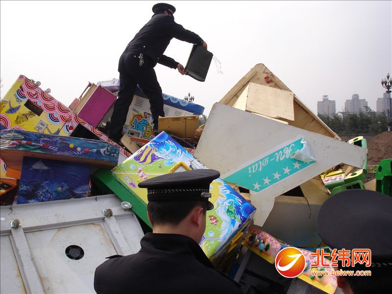 涉赌游戏机集中销毁现场