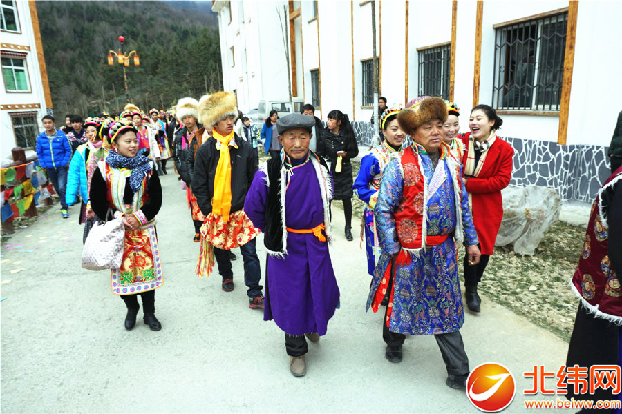 来自硗碛乡各个村落的藏族同胞身披节日盛装,结伴而行