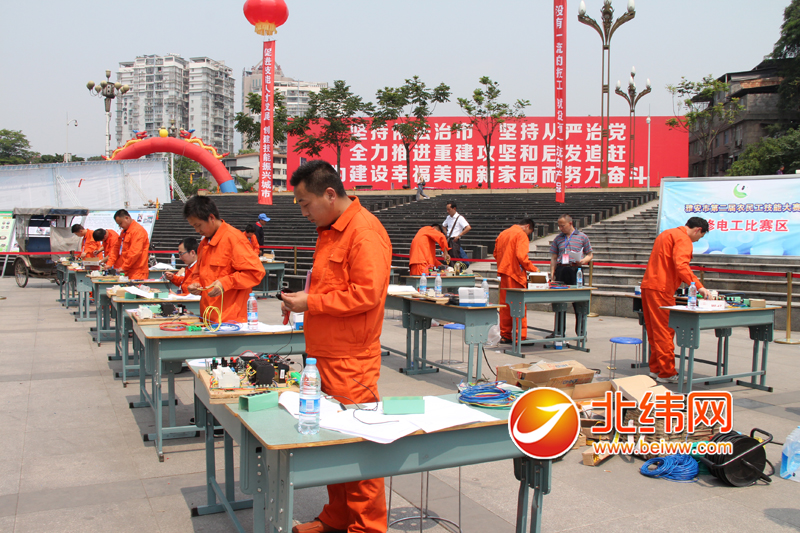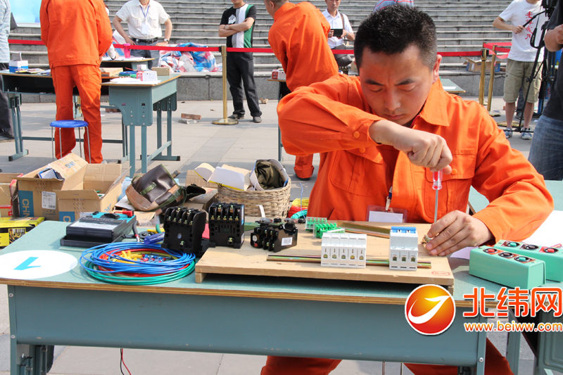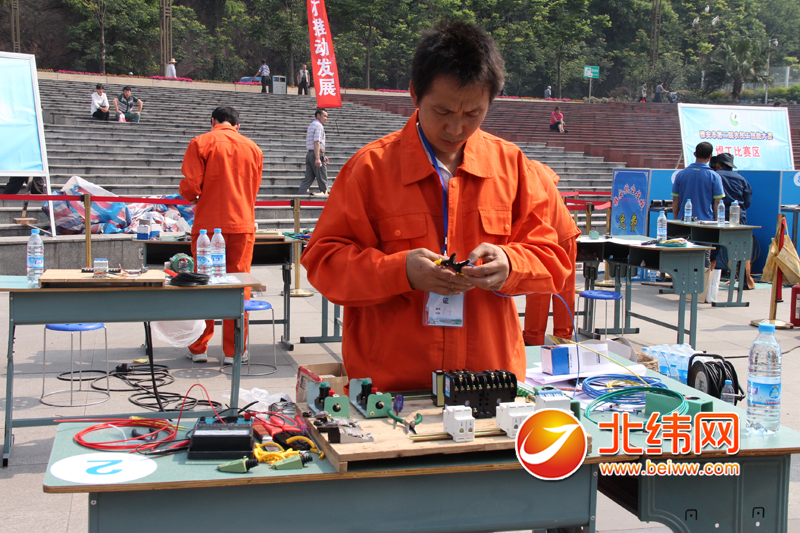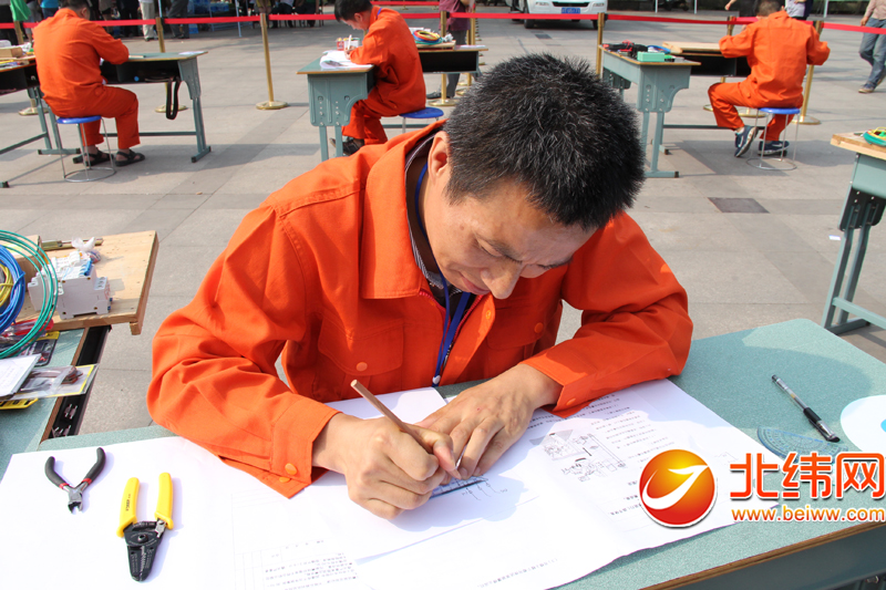维修电工比赛现场,参赛人员先拿着笔与直尺在图纸上计算,计算准确后便开始对电路进行修理、调试。现场虽然没有焊工般“火光四射”,但也是充满了竞争。