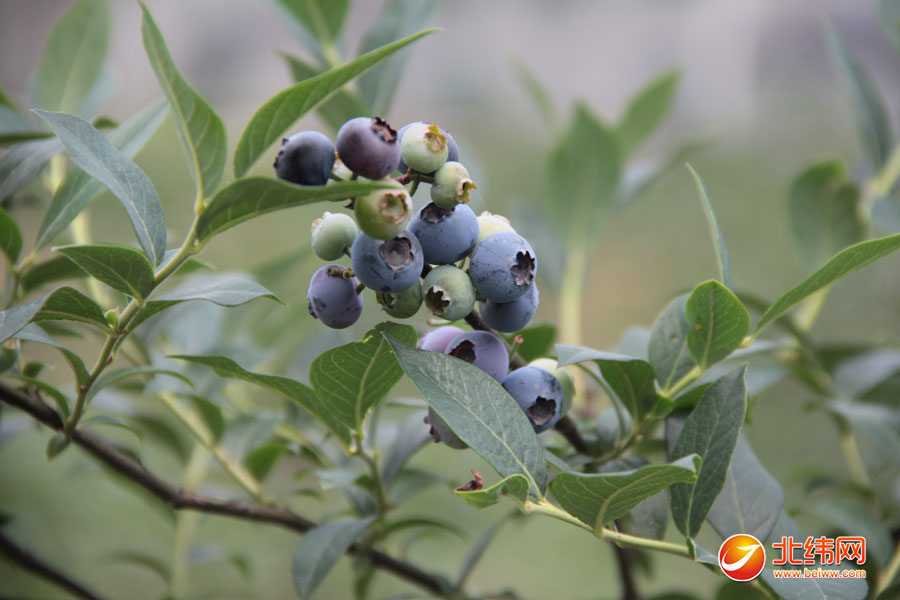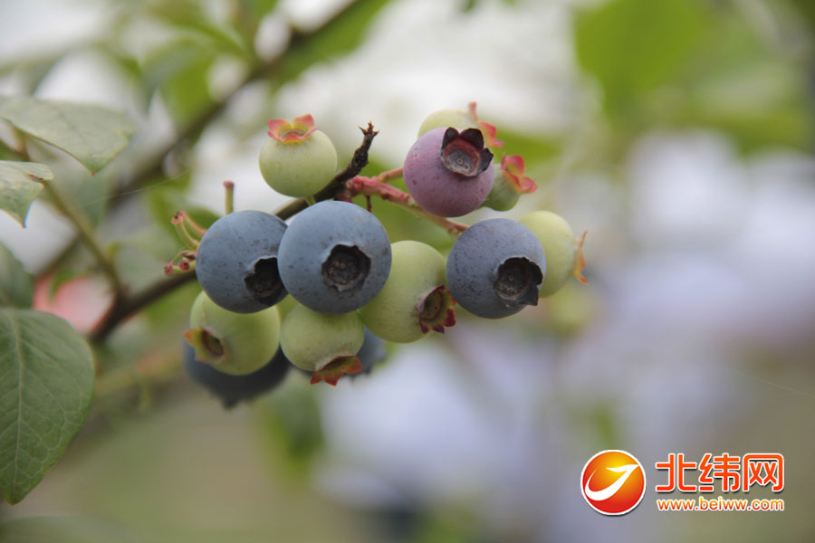 杨世英说,蓝莓开始成熟后,果子就会膨大,完全变成紫色后,就能采摘了。杨国英正在蓝莓枝头挑选成熟的蓝莓。