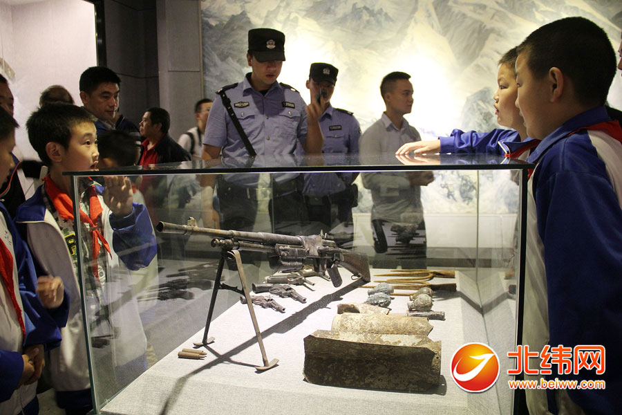 纪念馆内,市民正在参观红军翻越夹金山时留下的珍贵文物