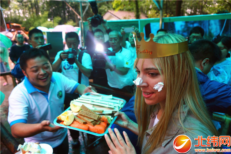 在第二天行程中,来自德国的女粉丝在熊猫基地内度过了一个难忘的生日