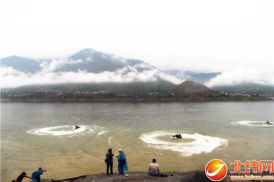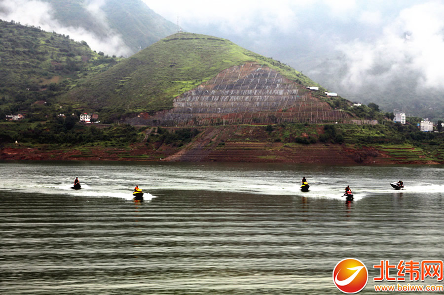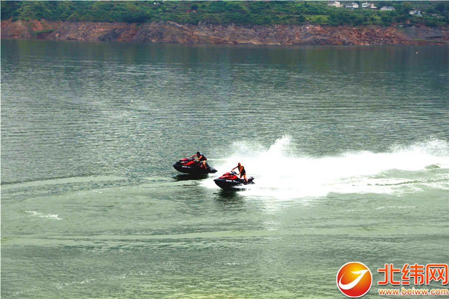 来自乐山一水上运动俱乐部的表演者驾驶着摩托艇在湖面大显身手,为岸上的汉源老百姓们上演了一场水上版的“速度与激情”。