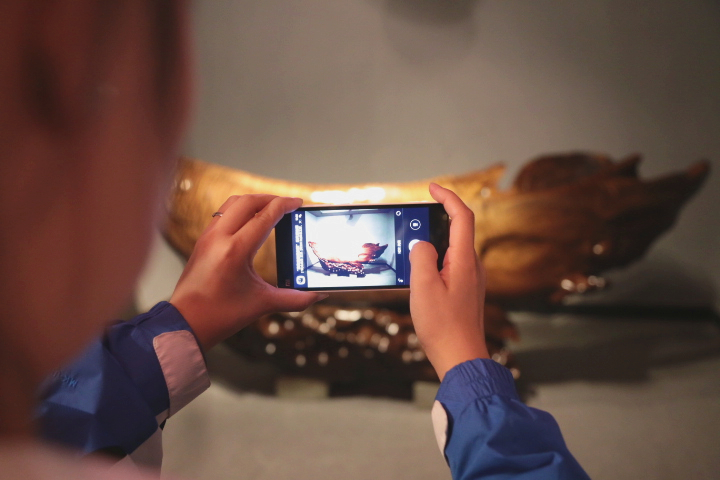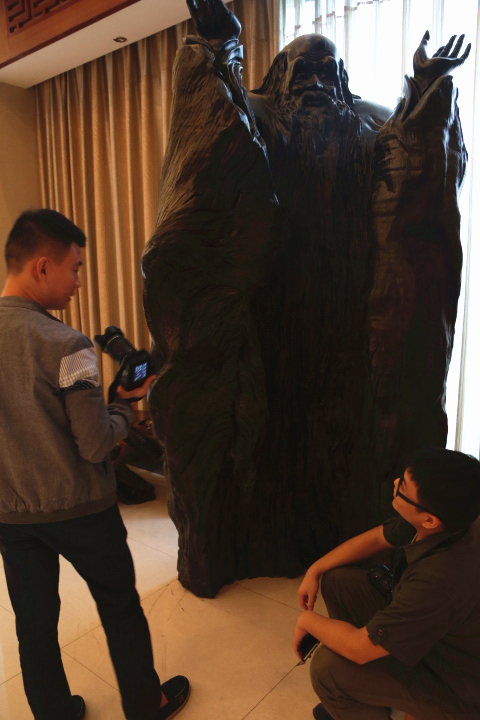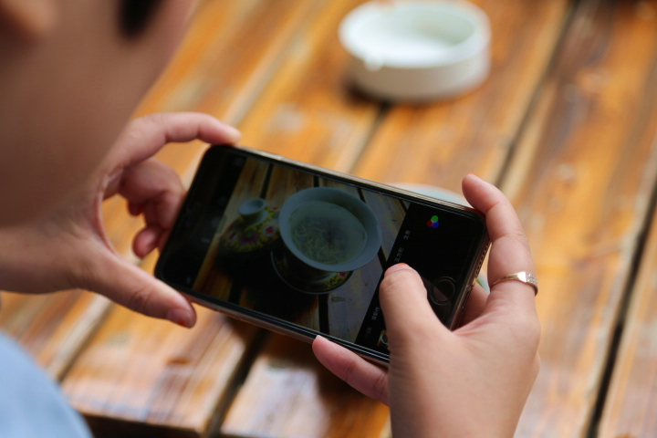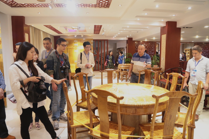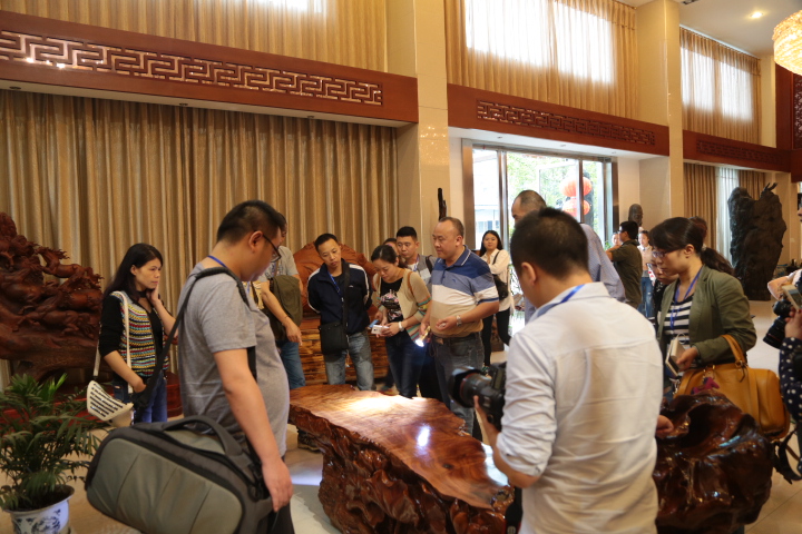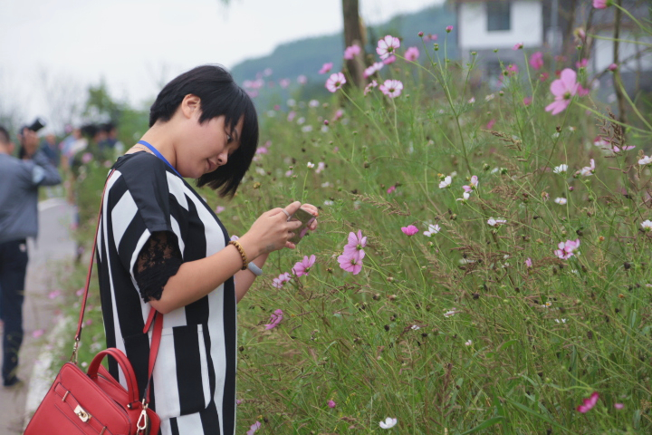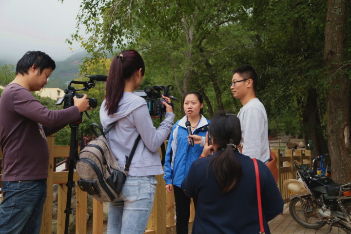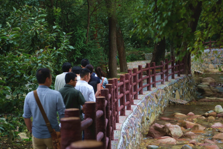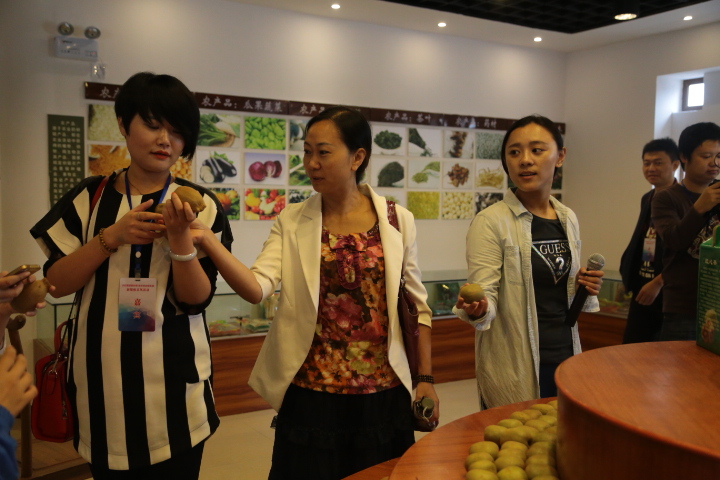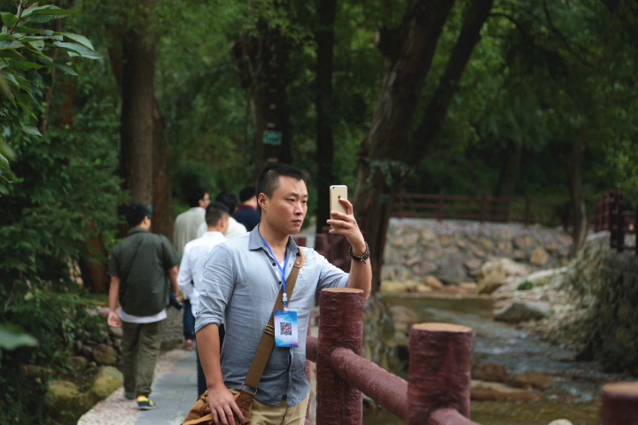 媒体团成员在“永洪”红富士苹果园拍照留念