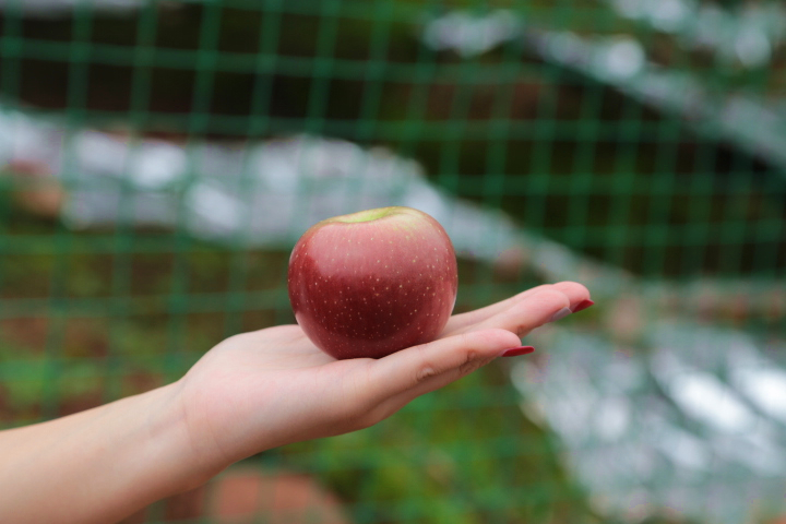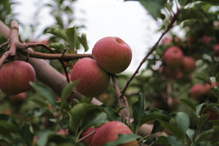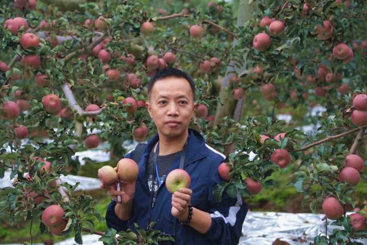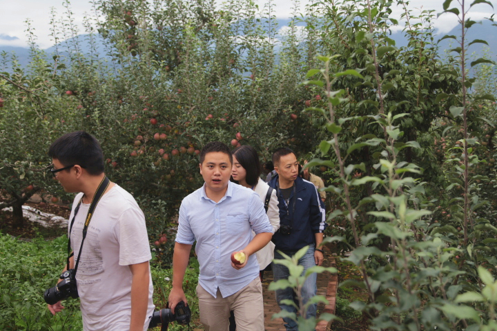 媒体团到达汉源“永洪”红富士苹果采摘园,体验采摘乐趣。