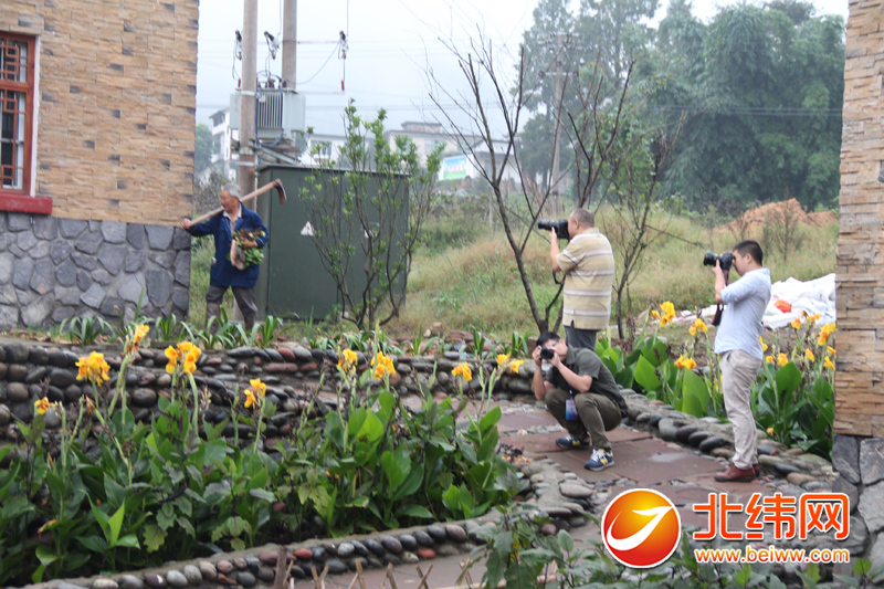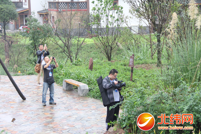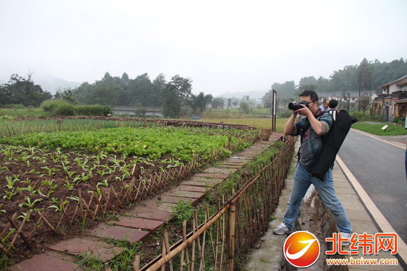 媒体嘉宾在余家村拍照