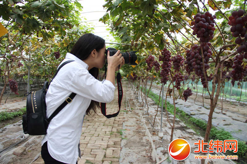芦山县龙门乡红星村葡萄园里,媒体嘉宾拍照留恋