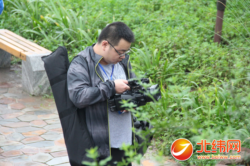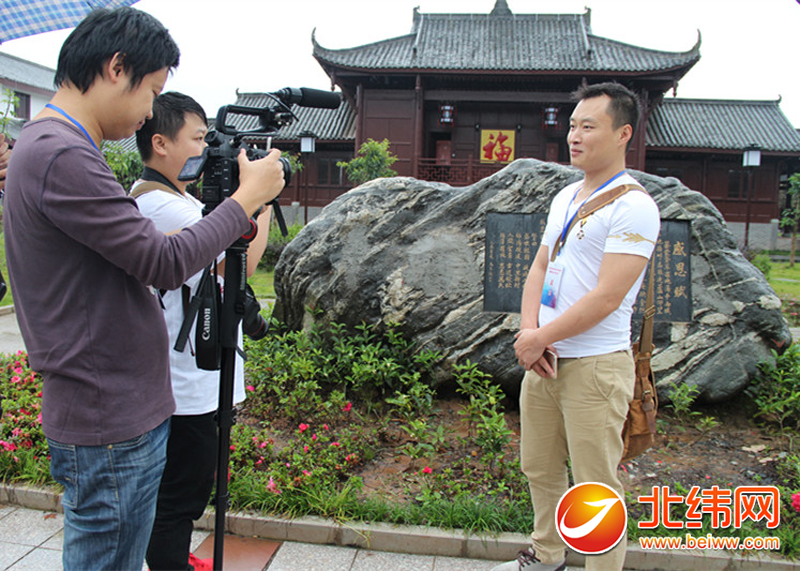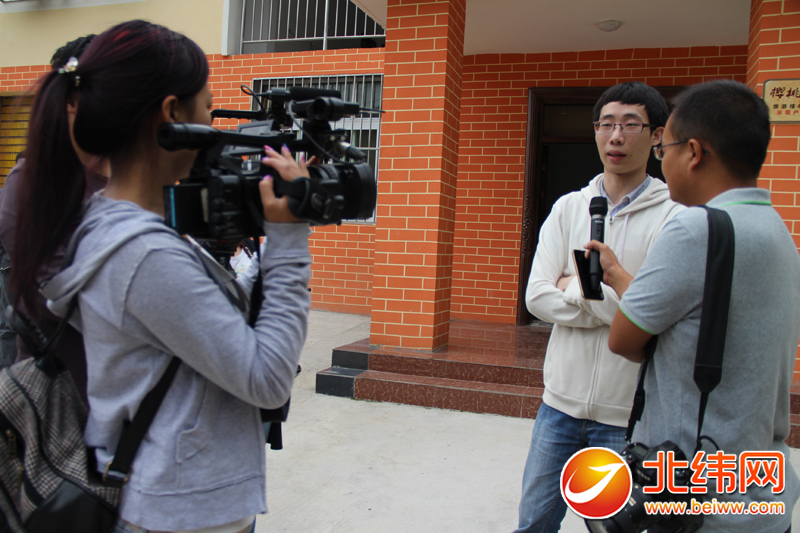 绵阳新闻网编辑李志(右)接受北纬网记者的采访