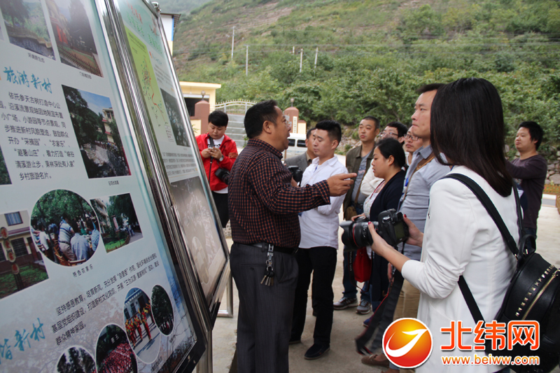 媒体嘉宾参观汉源县清溪镇同心村新村聚居点 图为当地村支书在为嘉宾们进行讲解
