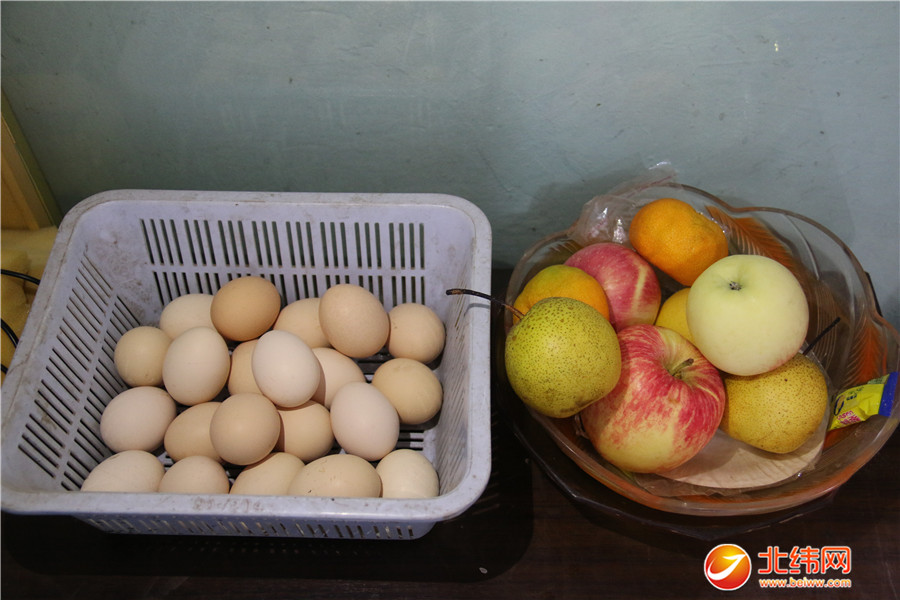 注重营养的朱含英老人,每天都会吃两个鸡蛋。儿女们送来的水果就放在一边。因为牙齿不好,儿女们会为老人把水果煮熟。