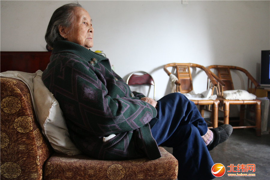 朱含英老人在家中闲坐,不知是否回忆起了年轻时候的时光。