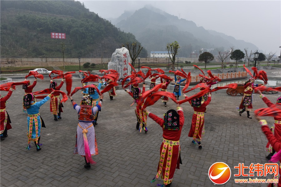 磨刀社区的居民正在新居外的广场上欢歌——张镜海摄