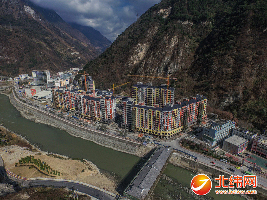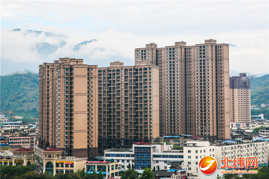 荥经县城房重建中,已经全部完工的财富中心大楼