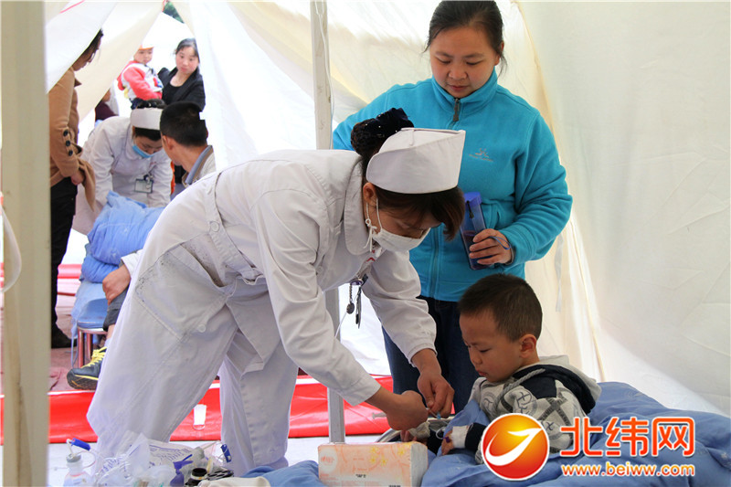 雅职院附属医院副院长杨啸宇在救灾现场为灾民服务