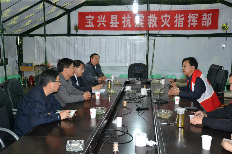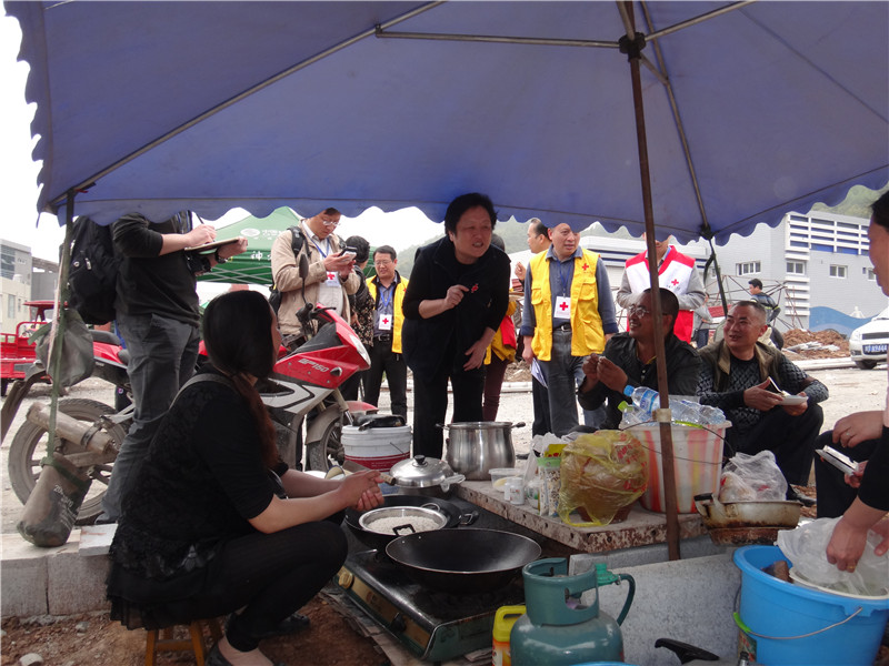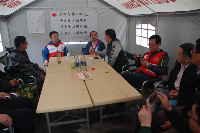 2013年4月23日,四川省、雅安市、芦山县红十字会相关负责人坚守震中芦山抗震救灾