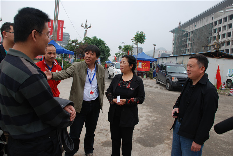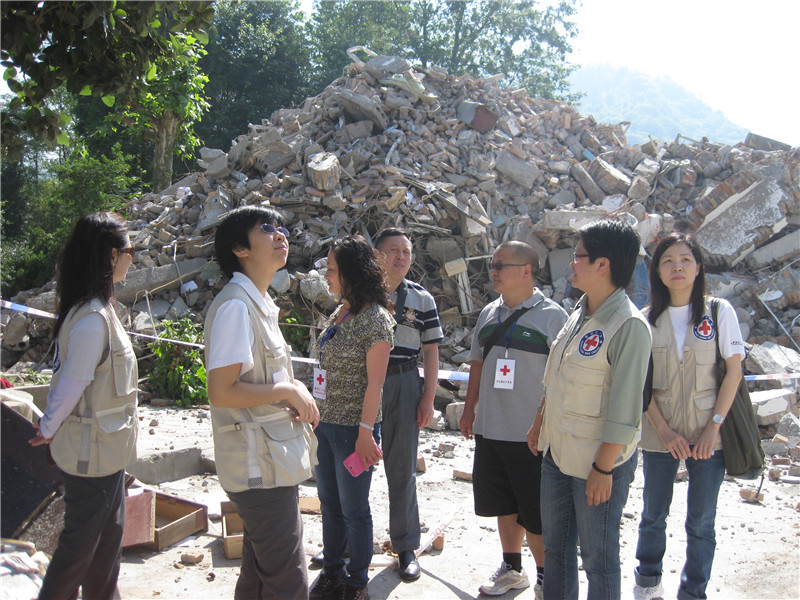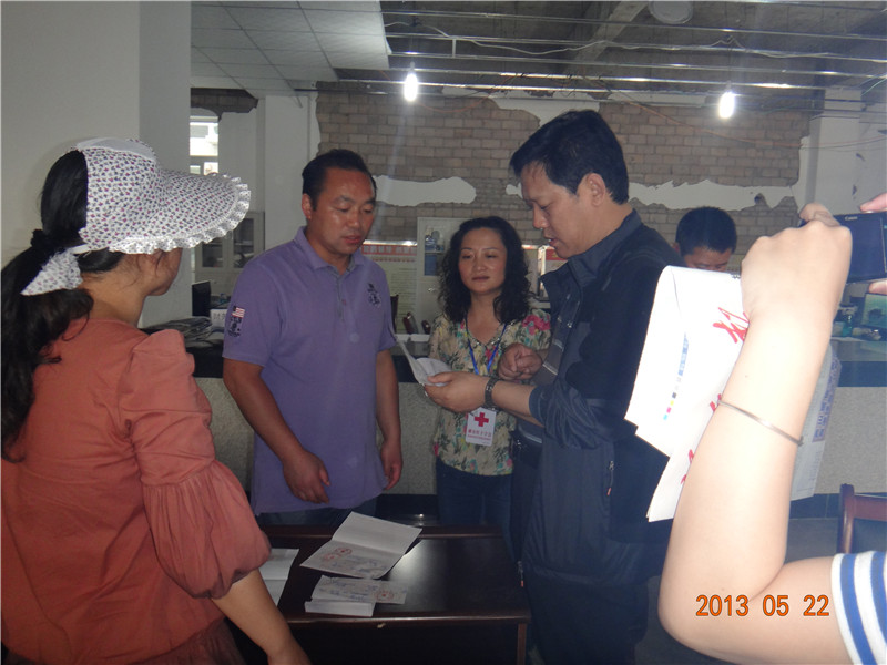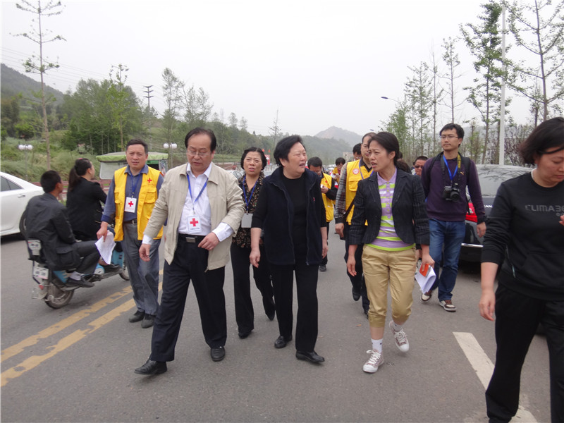 2013年5月12日,香港红十字会副主席胡郭秀萍女士带队到芦山县察看地震灾情