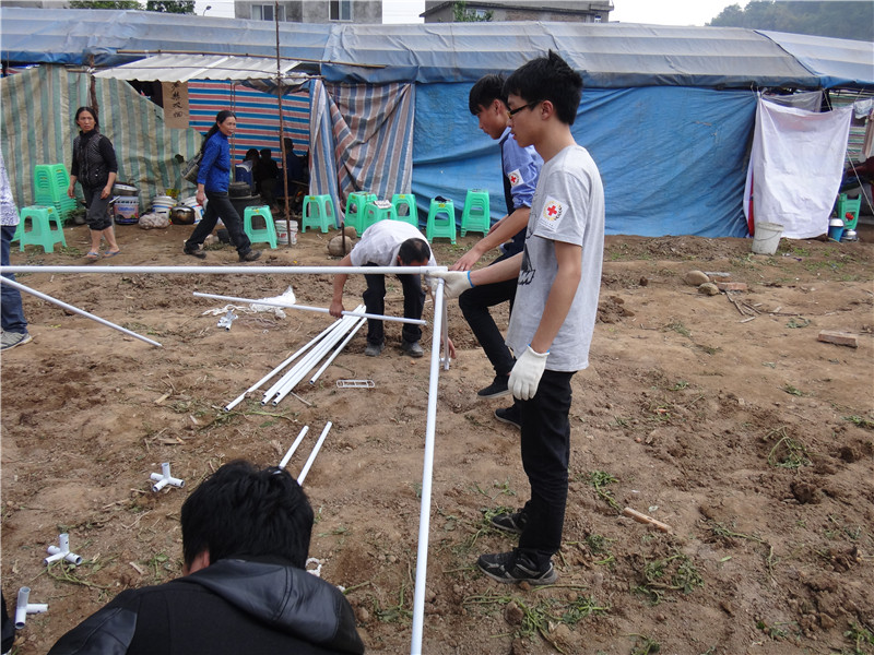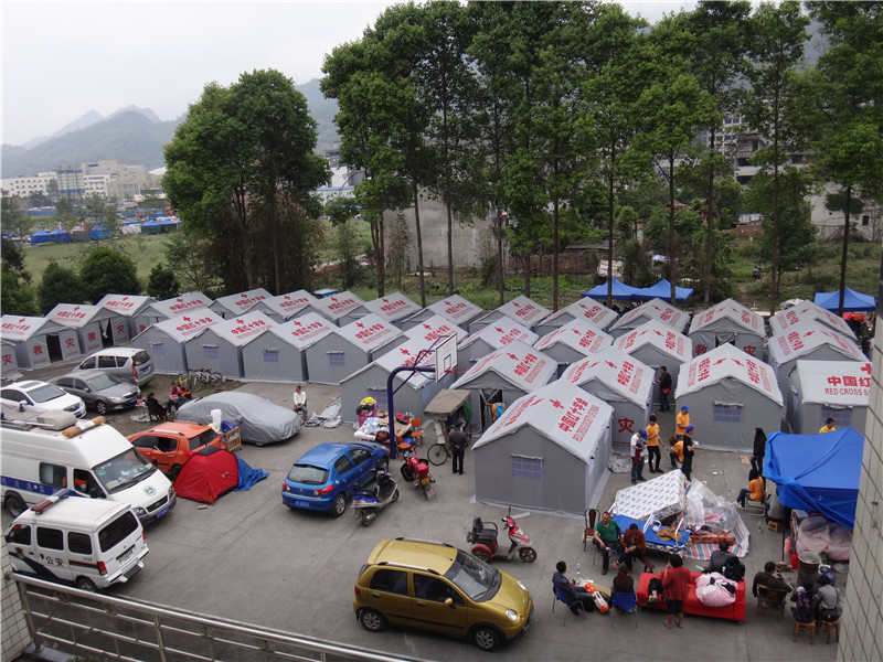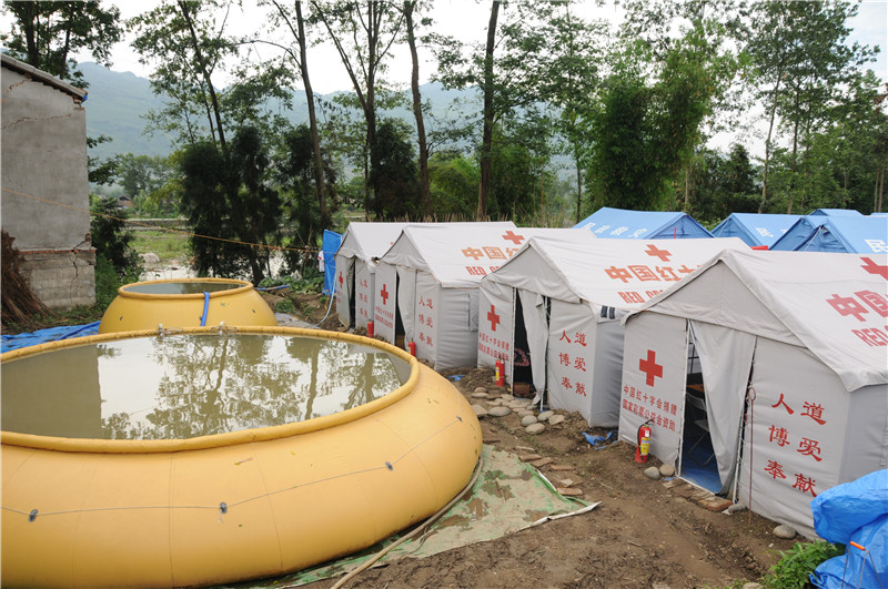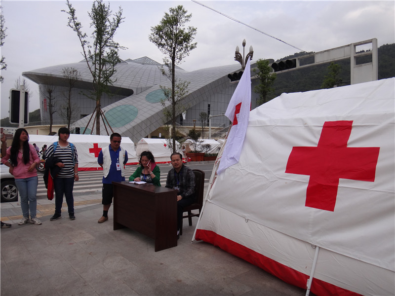 2013年4月20日,中国红十字会在芦山地震灾区搭建起全市第一批救灾帐蓬