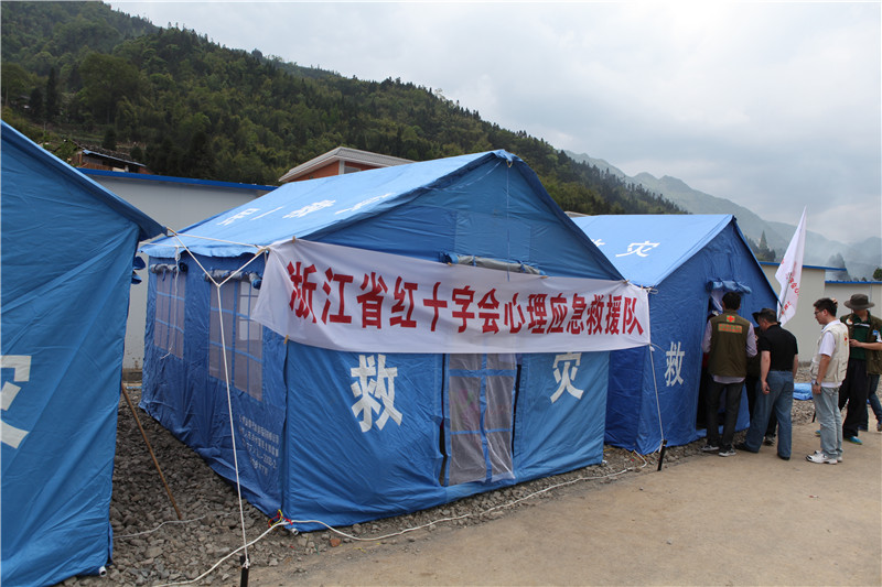 2013年5月4日,浙江省红十字会应急心理救援队工作帐篷