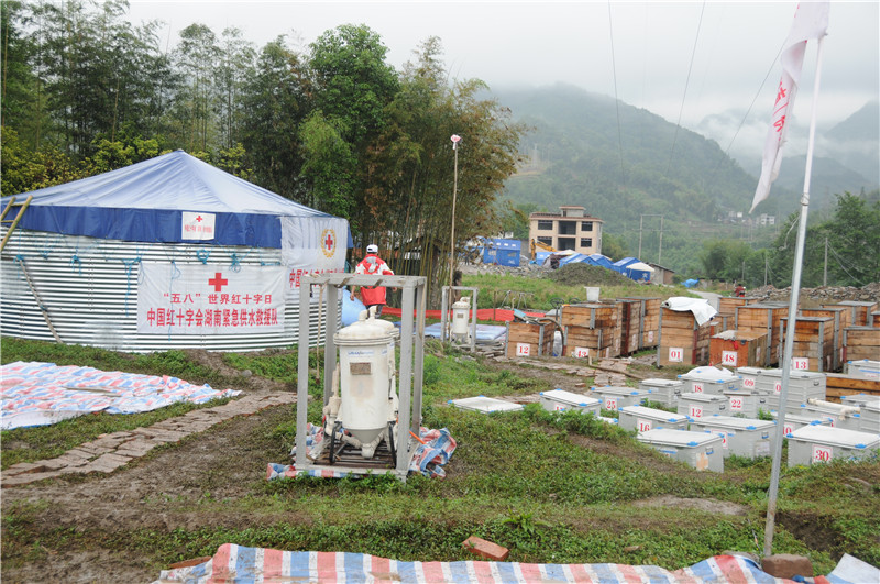 2013年5月21日,湖南省红十字会供水救援队设在芦山县地震灾区的供水基地